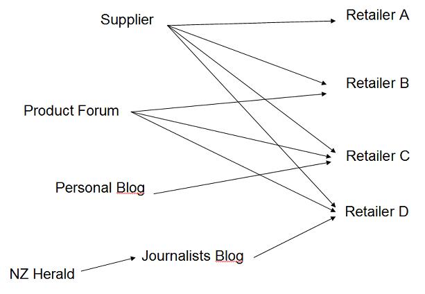 Incoming links are links from other websites to your website, and are used to share information with the originating website's audience. Search engines use incoming links as one of their many SEO ranking factors. Just as your website is ranked according to unique content and other factors, so are the sites that the incoming links are from. The higher the quality website, the more importance a link is given. In the diagram below, Retailer D has the most beneficial links and theoretically the highest ranking website, followed by C, B and then A.