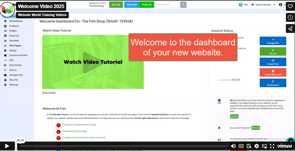 Website World offers a free trial, which gives you full access to their powerful website builder. This will let you check out the drag and drop editor, add and remove pages, images and text, see the available eCommerce features, payment gateway integrations and rural delivery detection and address verification.
