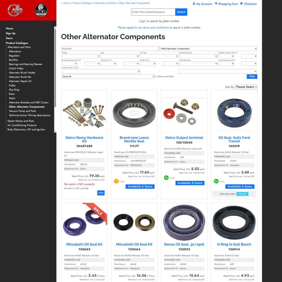 A busy looking page, however, the needs of automotive parts require finding the right part. Often all the product images and descriptions look the same, so getting the right voltage, right measurements, etc are very important to a very useable solution for finding the correct part for an automative repair