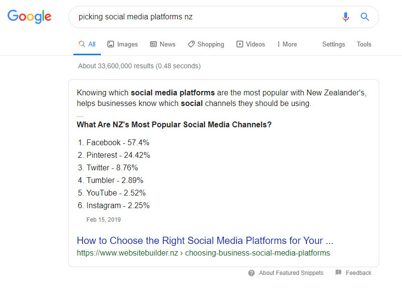 1. Plenty of free traffic - a featured snippet simply by the position it is on the search results page is clicked upon more times than another other organic link on the page. This even includes the number one result, which traditionally is what website owners want to achieve.