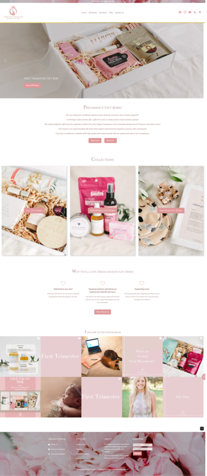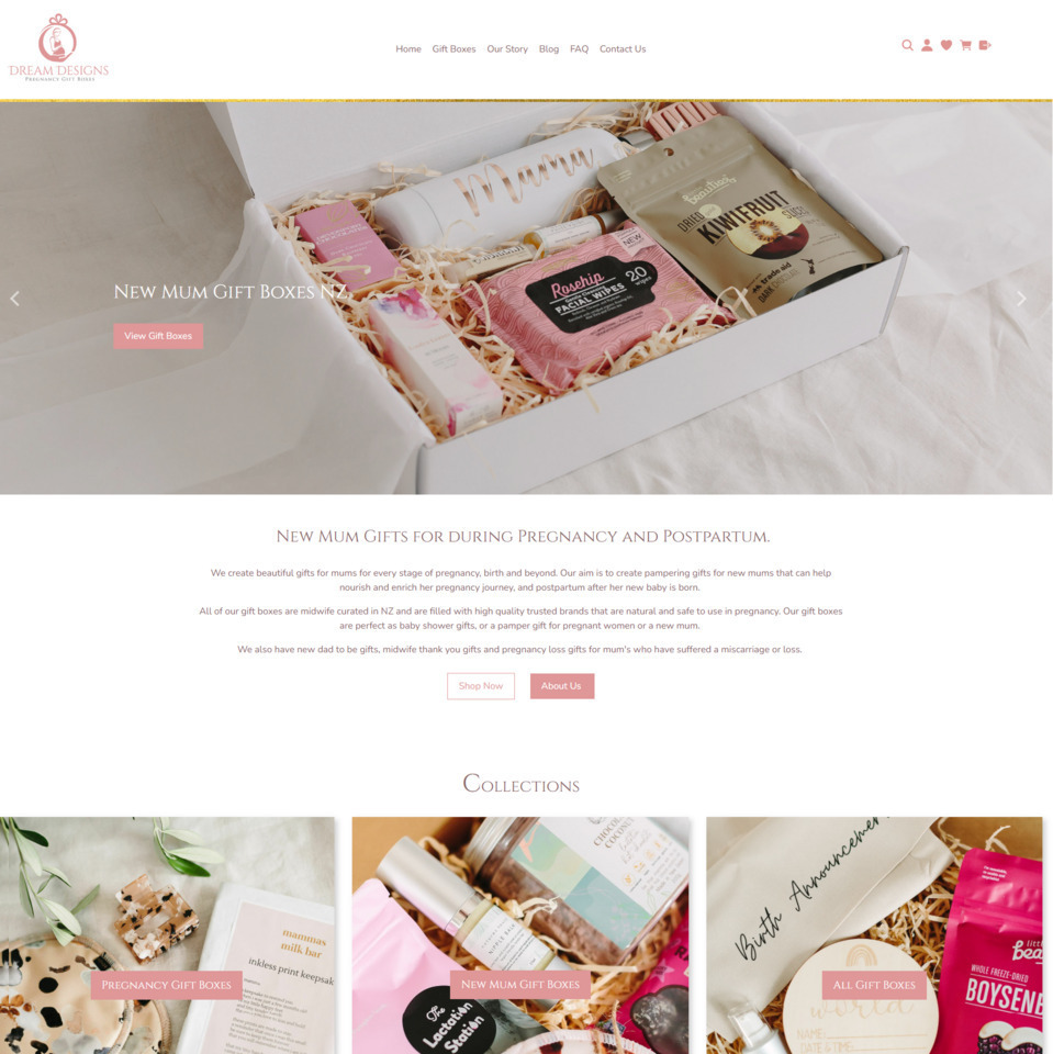 E-commerce gift box site, allowing stock keeping of separate components that appear in several gift boxes. Website Design: Wild Paradise Design www.wildparadise.nz