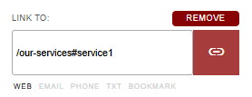 6. Once you have selected the page and it appears in the Link to Box, type the bookmark ID with a # prefix: e.g. #service1 onto the end of the page link.